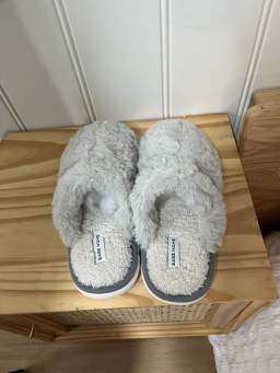 スリッパを受け取りました。毛むくむくでとても可愛いですし、履き心地も快適で暖かいです。何よりも安くて本当に物価が安いです。