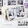 meetsペンケース|大容量・隠し痛バ機能・文具ケース・ブラックホワイト・高見え・ヲタ活・おしゃれ・推し活・アニメ・グッズ・缶バッジ・バッジ